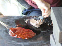 よく見て気付いたことですが、地の粉を使った本堅地で仕上げられてはいますが布がかかっていない!?ものとか、これ!紙?というものまであったり、下地が薄いもの厚いものなど様々でした。また、お椀の上縁が布で高台は何もかかっていないものもあり、輪島塗と言えども様々なものが存在するということをはじめて知ったものです。