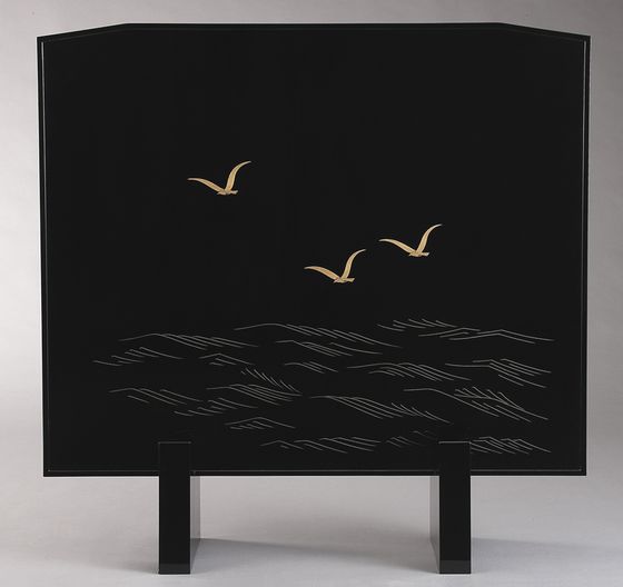 この帆船沈金の衝立の裏面は、波間にかもめが三羽飛んでいます。